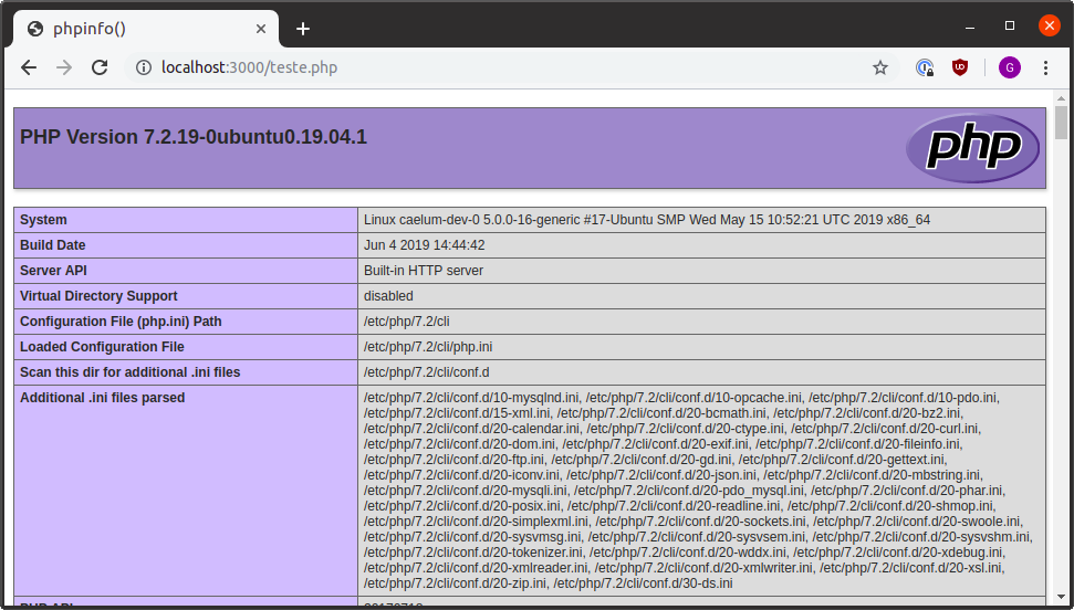 Na linha Loaded Configuration File, o nome do arquivo retornado foi /etc/php/7.2/cli/php.ini, com o nome do arquivo em mãos, abri ele em um editor de código e no final do arquivo e incluí a linha que havia sido pedida.